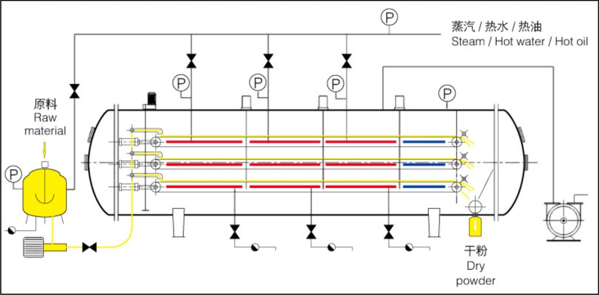 適用范圍:主要適用于中西藥品、食品、生物工程、化工原料、保健品、食品添加劑等各種液體膏狀類(lèi)原料的低溫干燥,尤其是對(duì)于粘性高、易結(jié)團(tuán)、熱塑性、熱敏性的物料;不適于或無(wú)法采用噴霧干燥的物料,真空低溫連續(xù)干燥機(jī)是最佳選擇。